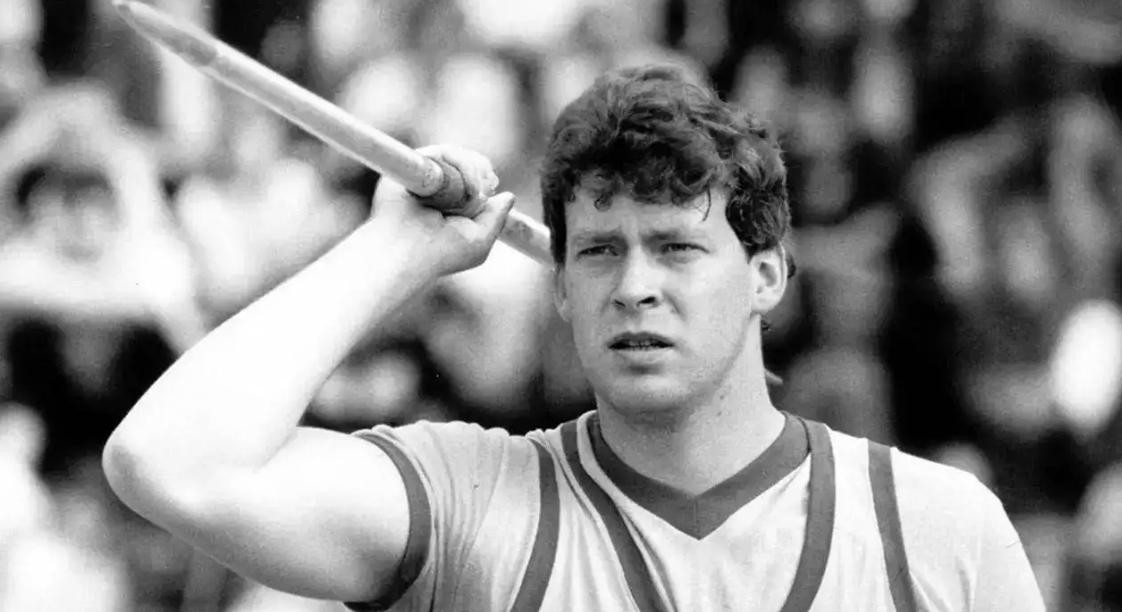 这个运动便是田径赛场上的标枪,而这位创造纪录的运动员名叫霍恩,他曾投掷出104.8米的世界纪录,至今无人能在赛场上将其打破。