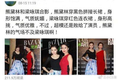 熊黛林合影时身高不再占优,败给了梁咏琪
