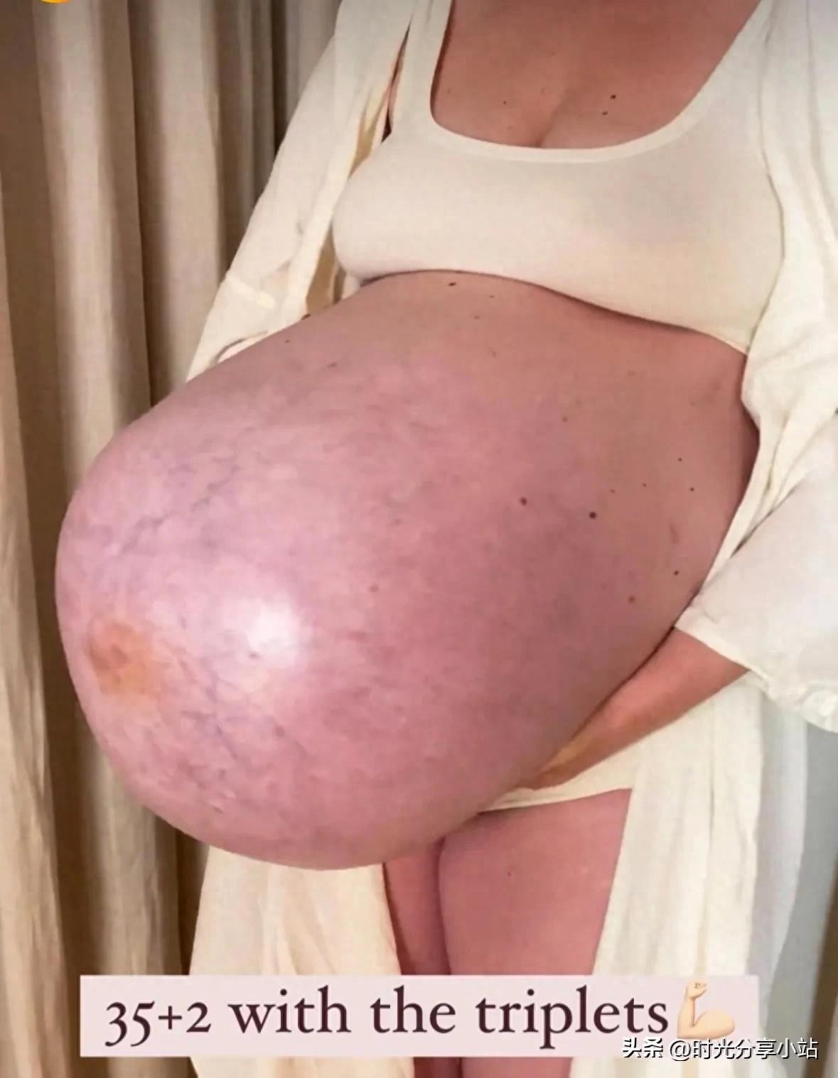 惊人!三胞胎妈妈晒孕期孕肚照,网友:母亲太伟大了!
