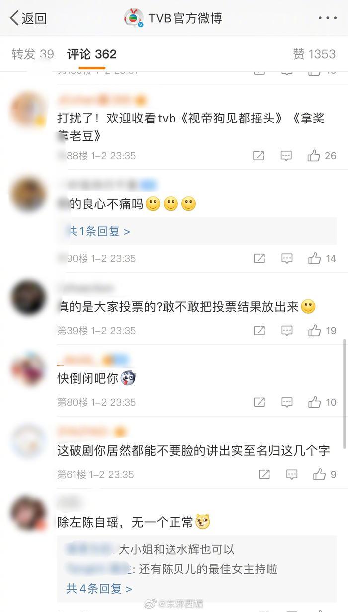 #TVB颁奖礼获奖名单# 出来了!官博已经被愤怒的粉丝骂得狗血淋头!