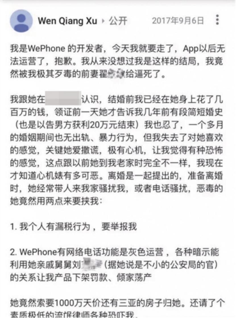 离婚时,翟欣欣更是狮子大开口要了20万分手费,还威胁说不给钱就要举报人家工作问题,