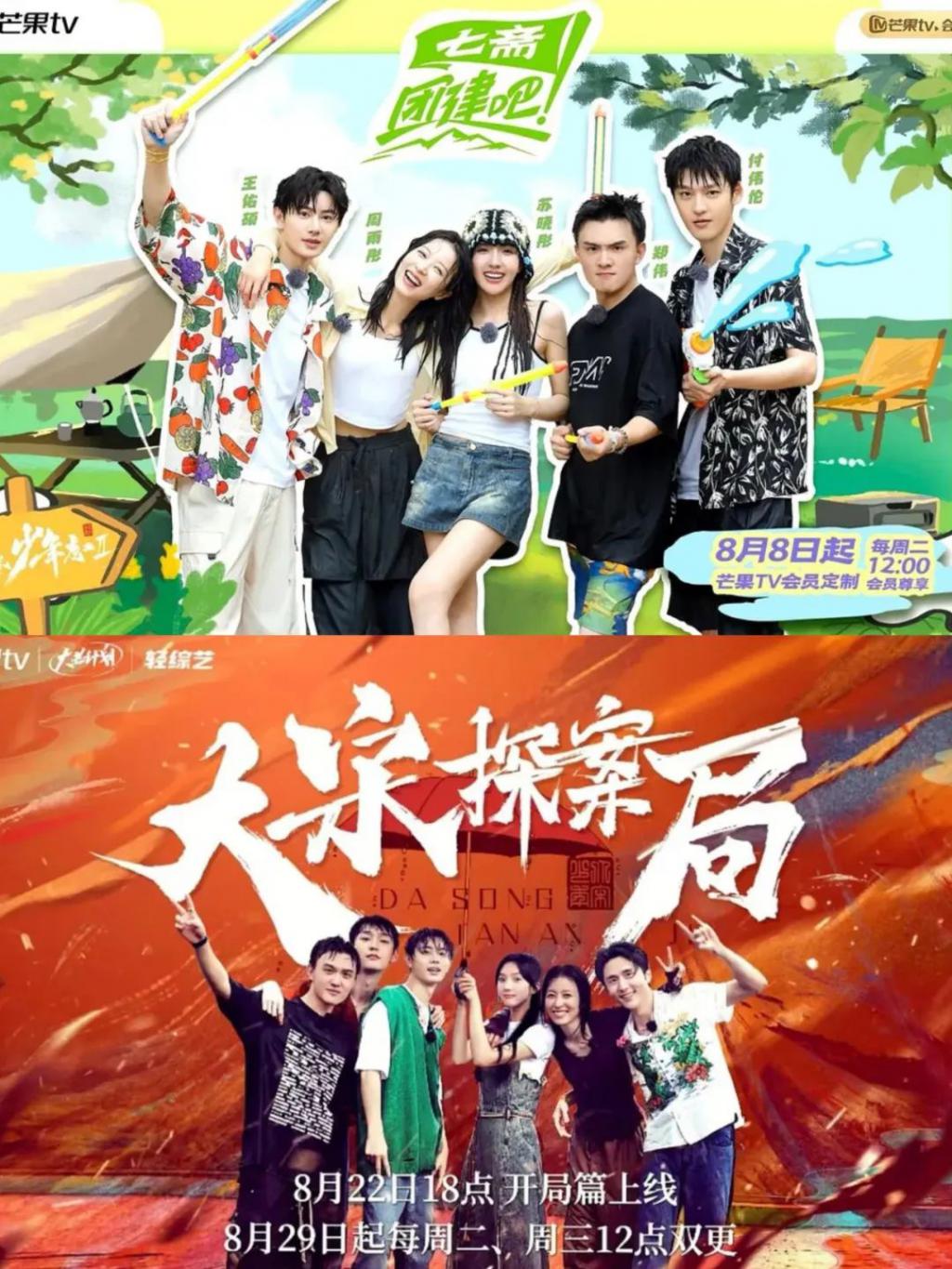 芒果 TV 的暑期档热剧《大宋少年志 2》也同样推出了两部衍生综艺,前有《团建吧!七斋》,后有《大宋探案局》,这两档节目接连上档,不过非常可惜的是正式衍生内容的上线已经距离剧集结束过了一段时间,并没有赶上热度的高潮。