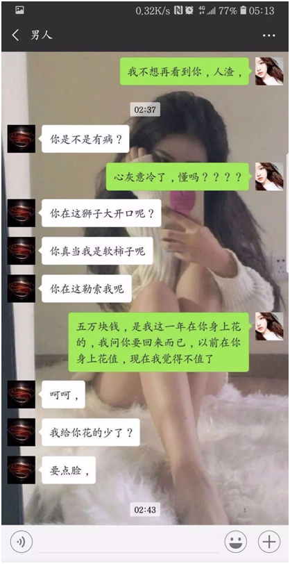 之后女方晒出了她与男主播无双的对话记录:
