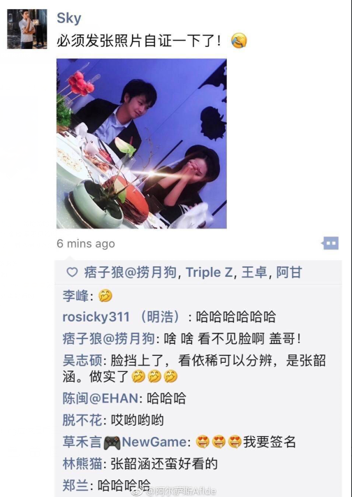 同时,SKY也在朋友圈发图自清,不过,这是自证吗?