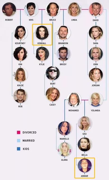 温知识:他们阿美莉卡三大流量家族,卡戴珊、詹娜和哈迪德,那可都是结婚离婚再结再离再重组的复杂微妙亲戚关系啊。