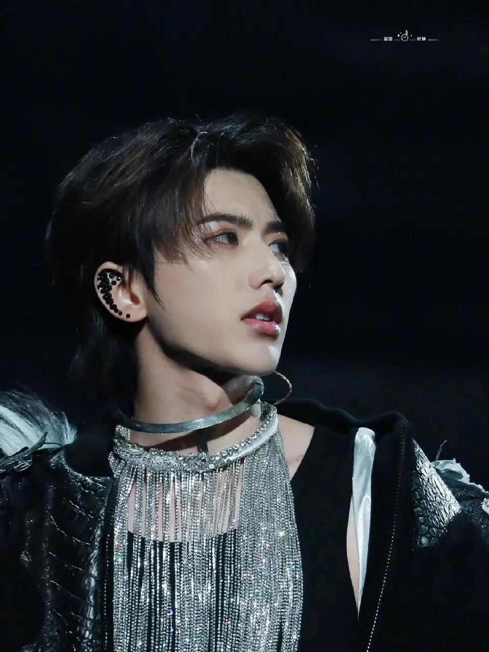 蔡徐坤舞台上这个耳饰也绝了,他舞台上的造型我都好喜欢,这个黑钻石是粘上去的吧,设计的很不错哇!