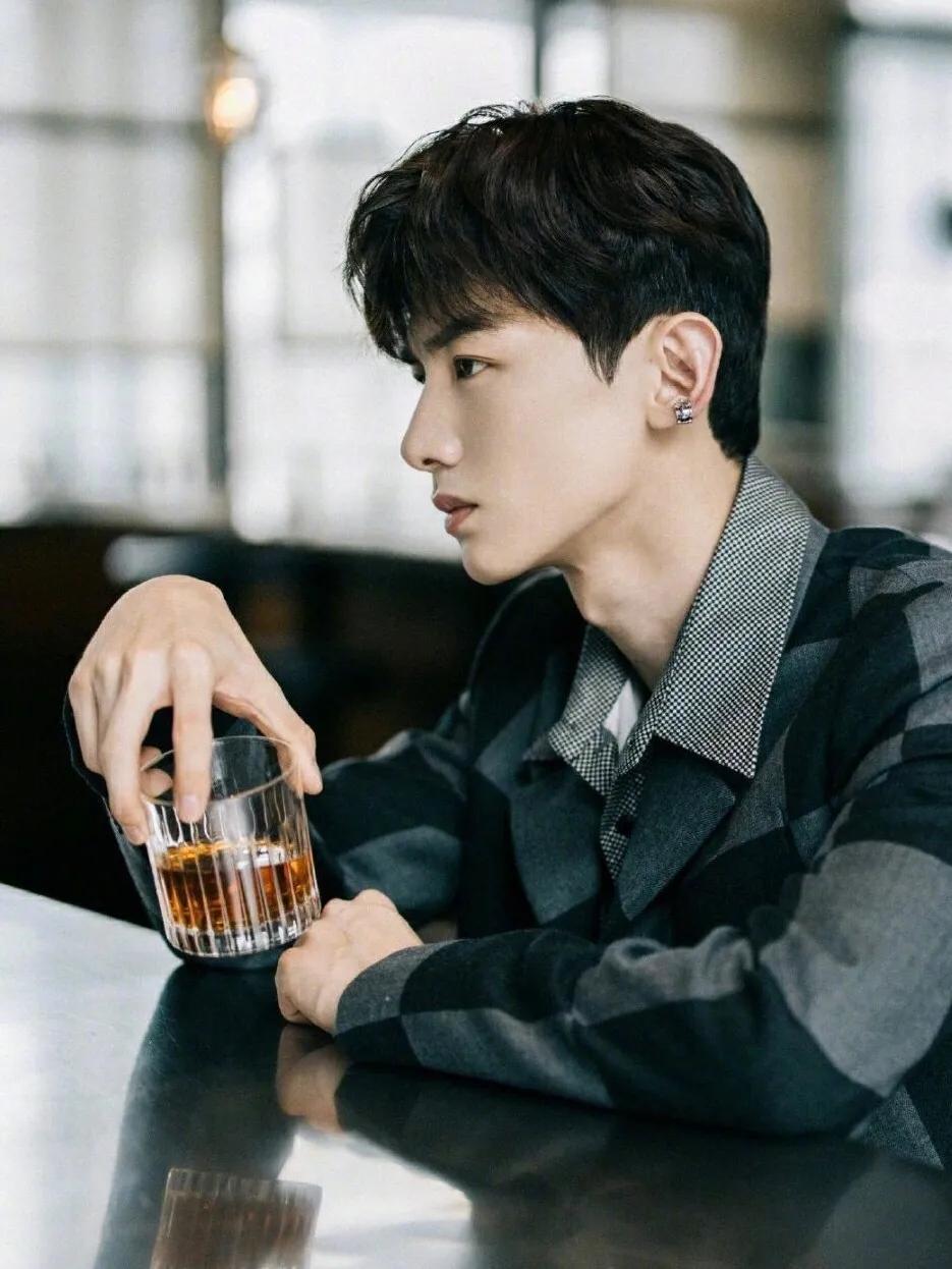 耳钉加酒杯什么的真的超级有氛围感,侧颜更是绝绝子。