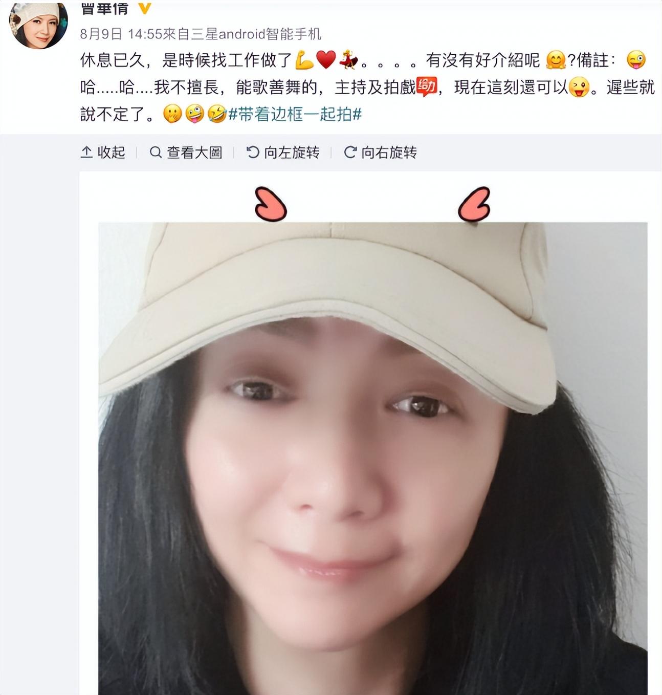 此后曾华倩也在自己的社交网站上晒出自己的照片,并主动向外界求工作,直言自己擅长拍戏、主持,退圈多年又开始发展事业了。
