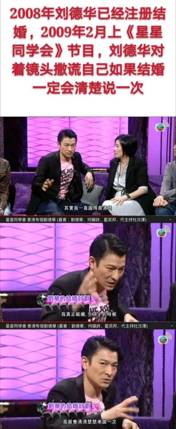 09年上节目的时候,刘德华明明已经是已婚人士,结果还脸不红心不跳地对着镜头撒谎,直言如果结婚一定会说清楚。可那个时刻刘德华已经结婚了,并没有大胆的承认。