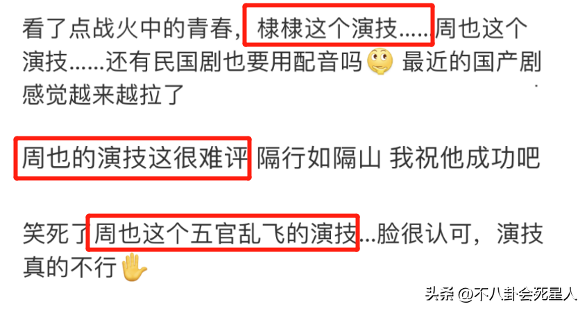 之前在抗战剧《啊摇篮》里,周也就用炸裂的“演技”冲击了观众,对比一旁的海清,简直是降维打击。