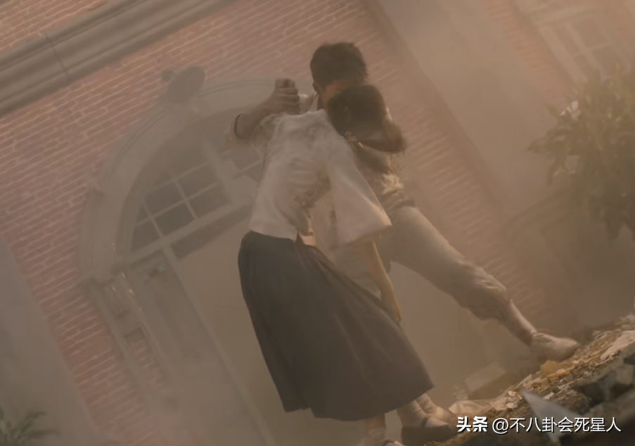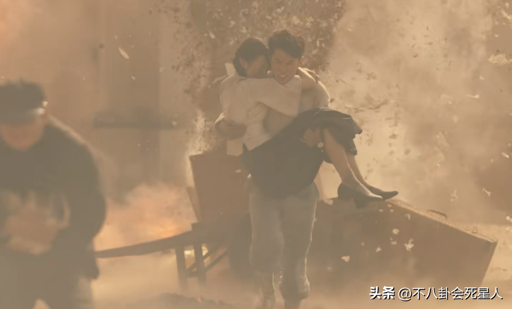 比如在炮弹轰炸中,周也饰演的女主“恰巧”扭了脚,王鹤棣饰演的男主立马展现了最费力的公主抱,在硝烟里展现男友力。