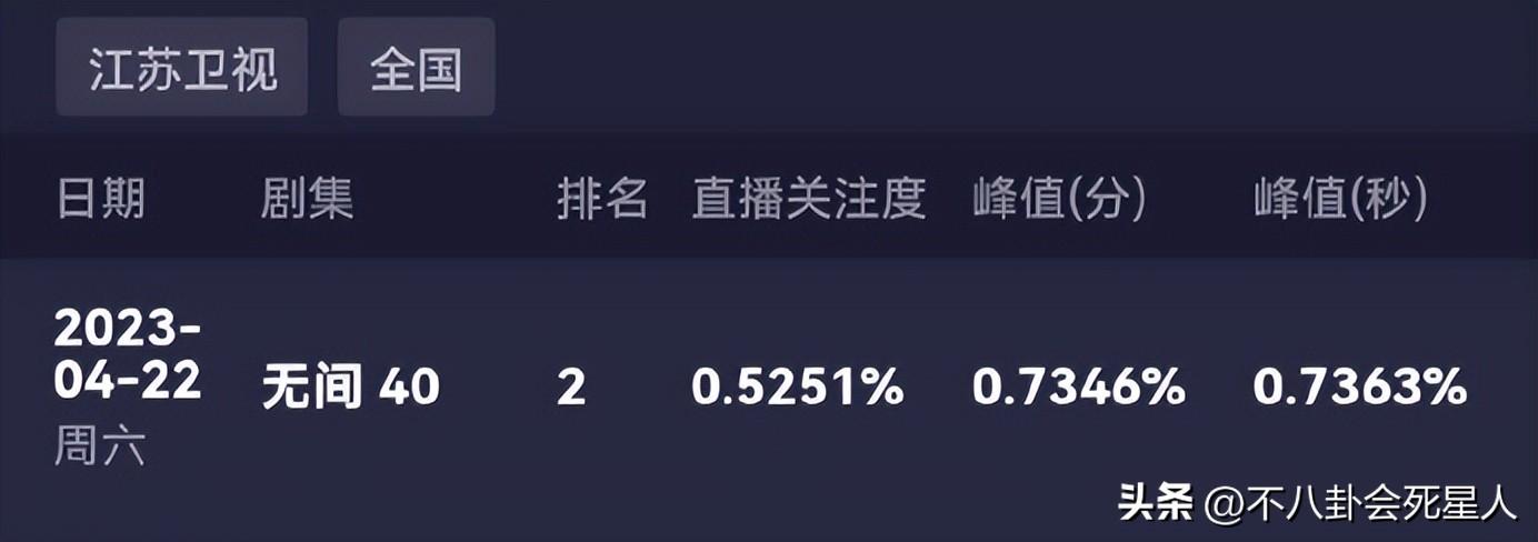 要知道它接档的同卫视电视剧——靳东主演的《无间》,大结局时的收视率峰值高达0.7,如今《战火中的青春》一接档,直接将收视率跌了一半。