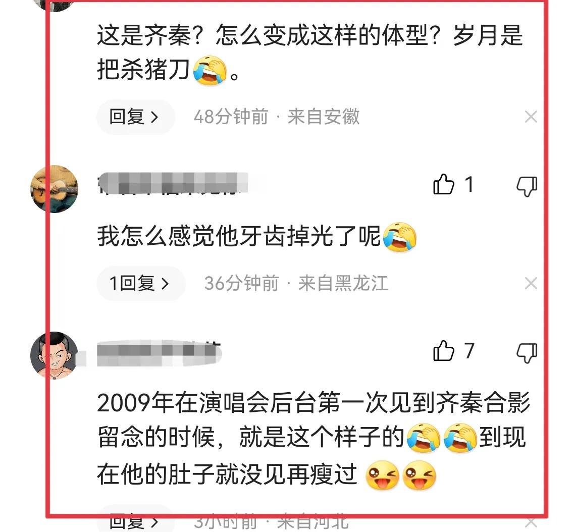 网友看了齐秦的状态后,有点接受不了,纷纷吐槽,他这个肚子,一看就是不忌口,各种食欲味道下肚,对嗓子是极坏的影响,再加上不锻炼,没体力耐力支撑肺活量,难怪他的唱功倒退如流。