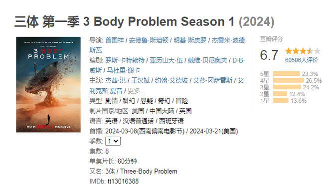 网飞版《三体》评分出炉,比国产的差远了!