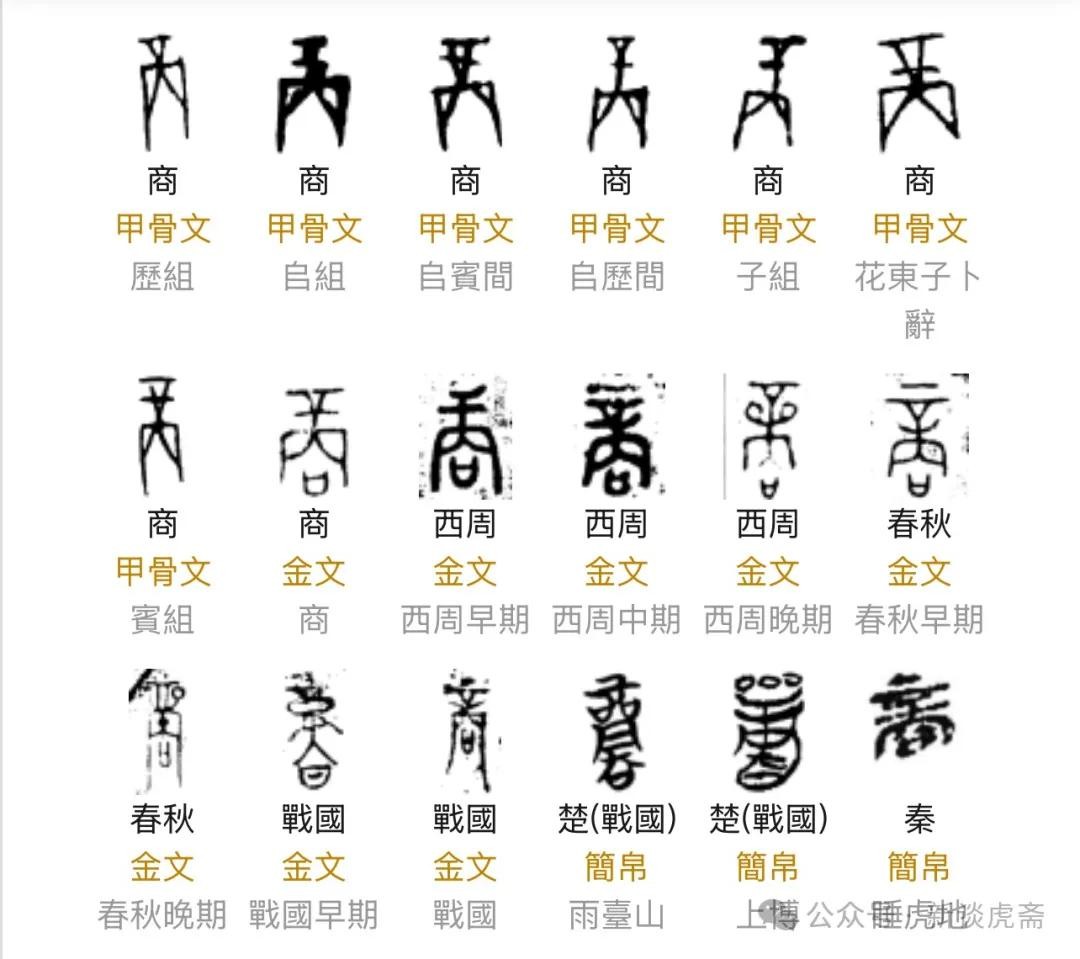 看上图“商”字在甲骨文中是种建筑物的象形。“商”是商人曾经建过都城的地点。商人就以此建筑物去命名其王朝的所在。
