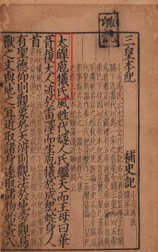 三皇本纪·太皞伏羲氏 | 补史记.唐.司马贞.南宋建安黄善夫家塾刊本.日本国立历史民俗博物馆藏