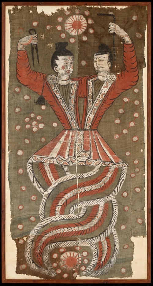 伏羲女娲图 | 唐.绢本设色.吐鲁番阿斯塔纳墓穴出土.国立中央博物馆藏。有好事者根据这幅画解读出很多内容