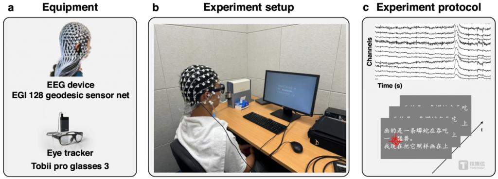 其次,利用 128 个通道的高密度脑电图数据和每秒 1000 次的采样率,研究人员能够精确追踪大脑在阅读中文时的微妙变化;