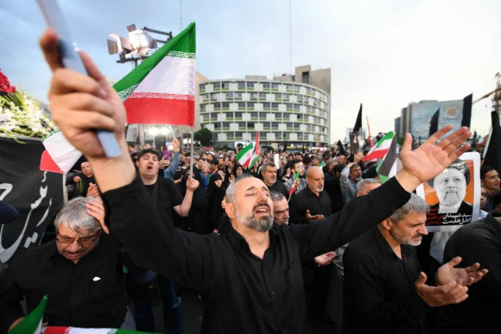5 月 20 日,在伊朗首都德黑兰,民众悼念直升机坠毁事件遇难者。伊朗政府当天确认,总统莱希在 5 月 19 日发生的直升机事故中遇难。新华社记者 沙达提 摄