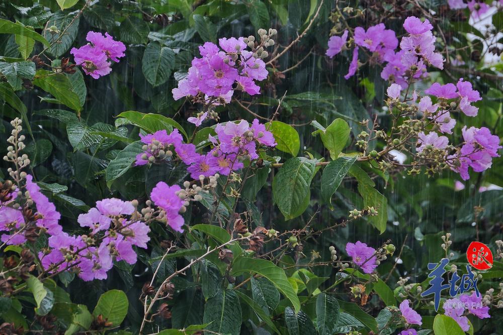 连日的强降水,未能阻挡着花城的紫薇花顽强盛开。