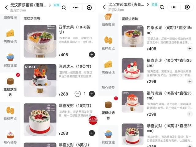 左图:罗莎蛋糕原购买页面。右图:罗莎蛋糕现购买页面。