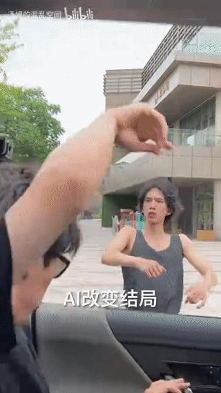 比如说这个视频,本来是两个人打架。" 被 AI" 后突然相拥在一起,还变出来个面条??然后又若无其事地分开,仿佛什么都没发生过。