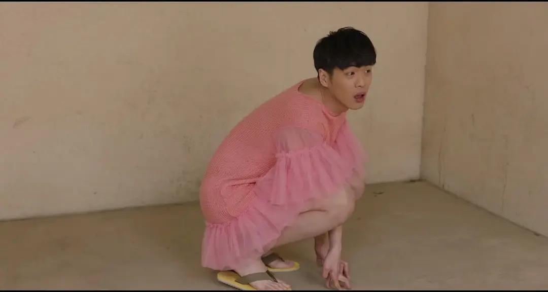 在一次洗澡的时候被李现逮到了机会,把他的衣服全都给拿走了,只剩下了一身粉色连衣裙,百般无奈下他一个大男生,只好穿着粉色连衣裙在校园内奔跑,