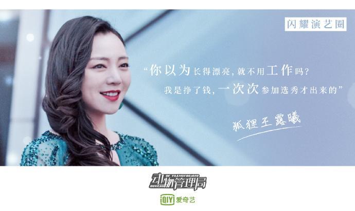 这次在《动物管理局》饰演狐狸精王露曦,原名王春花,因为放屁第一名得以进城,也是脑洞大开,做了明星的王露曦再回不到王春花了。可怜了痴情的大根哥。