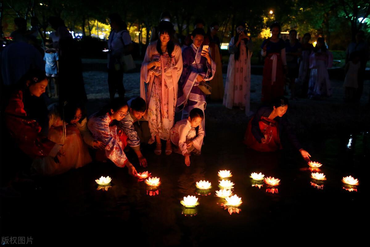 七月十五这一天传说地府的大门大开,那些被囚禁在此的“鬼”都会出来。关于这一天的民间习俗也有很多,像上坟祭祖、放河灯、蒸面羊等等诸多的民间习俗,放河灯是最为多见的习俗,晚上的时候会把灯放进水中飘走,河面上会泛起闪烁的灯光。农村老人说这河灯也是为了照明引路,帮助那些从地府出来的“鬼”指明道路,从而借助河灯的指路,找到家人接受祭祀。