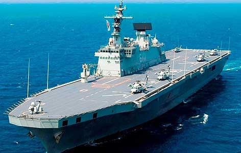 同朝鲜海军相同韩国的海军长久以来也是一支近海防御型海军,缺乏远洋作战能力,但随着韩国蓝水海军计划的实施,2艘独岛级两栖攻击舰已经服役,甚至未来还可能会拥有更大吨位的“准航母”,这就使得韩国海军拥有了一定的远洋作战能力。 韩国海军的人员规模有约80000人。2011年后使用的舰艇约有172艘(总排水量共计210000吨),包含2艘两栖攻击舰、12艘驱逐舰、12艘潜艇、32艘护卫舰,75艘巡逻艇,分为三支舰队、一支混成战团、一支快速反应战团和一支潜艇战团。海军陆战队名义上属海军,实际自成体系不受海军司令部节制,28000人的部队共编有2个陆战师,两个陆战旅。海军战争时期归属“韩美联合海军构成军副司令部”指挥。