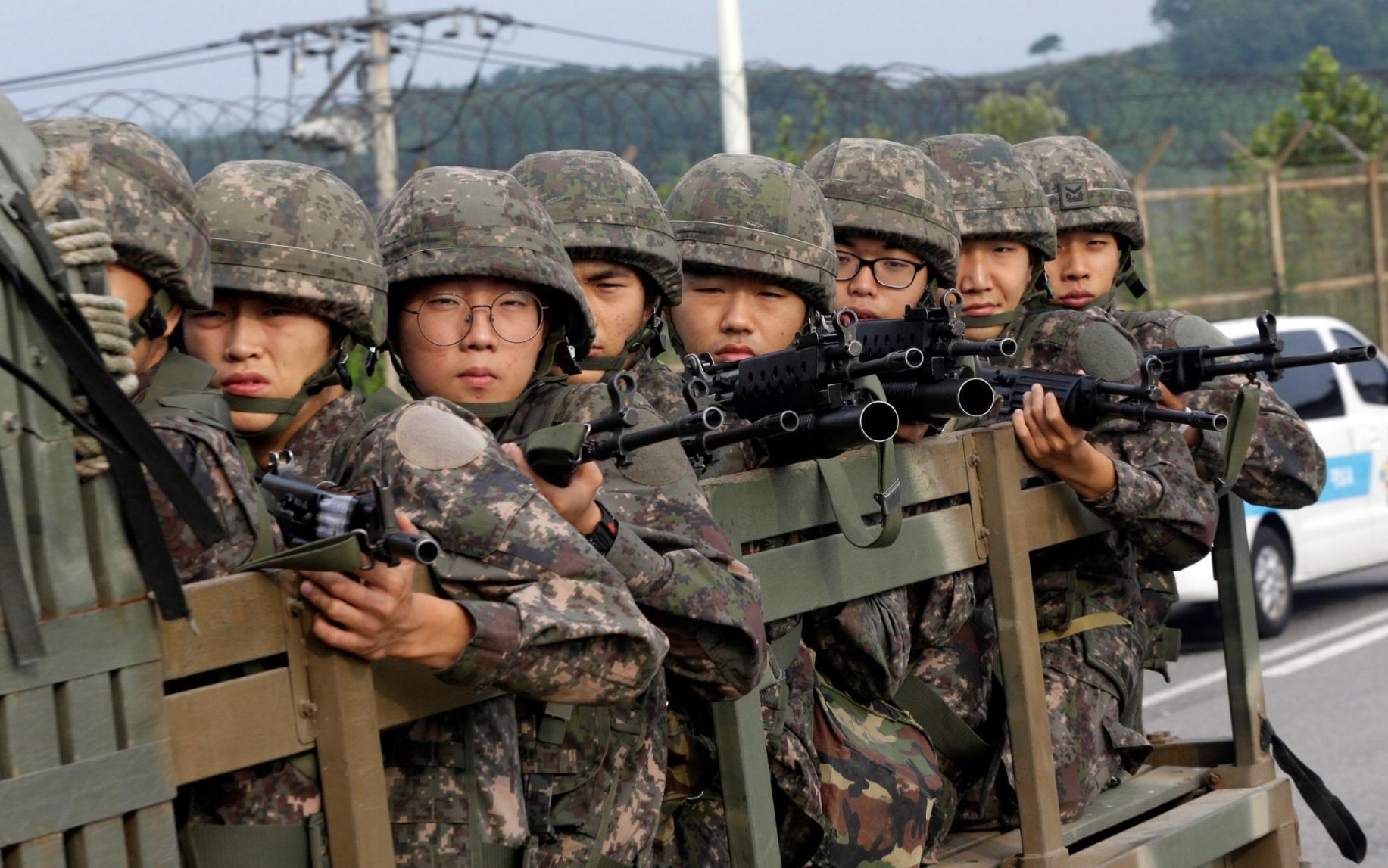 大韩民国国军现役总兵力50万,在世界上排名第六,其中陆军36.5万、海军7万(含海军陆战队的2.9万)、空军6.5万,预备军275万人,另有约2.8万之美国驻军。