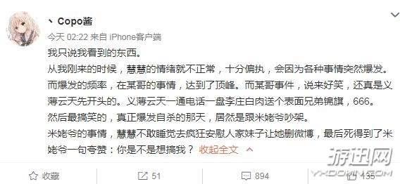 慧慧闺蜜,ID为丶copo酱爆料笑笑在结婚前探险,直指笑笑