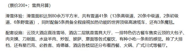 由于是老牌雪场,雪具大厅、设施、周边酒店配套都有些老派,看起来有点年代感。所以更推荐滑雪爱好者来这里,雪质、雪道都很棒,高级雪道占比65%+。这里能看到雪后的雾凇美景,服务也是公认的好。