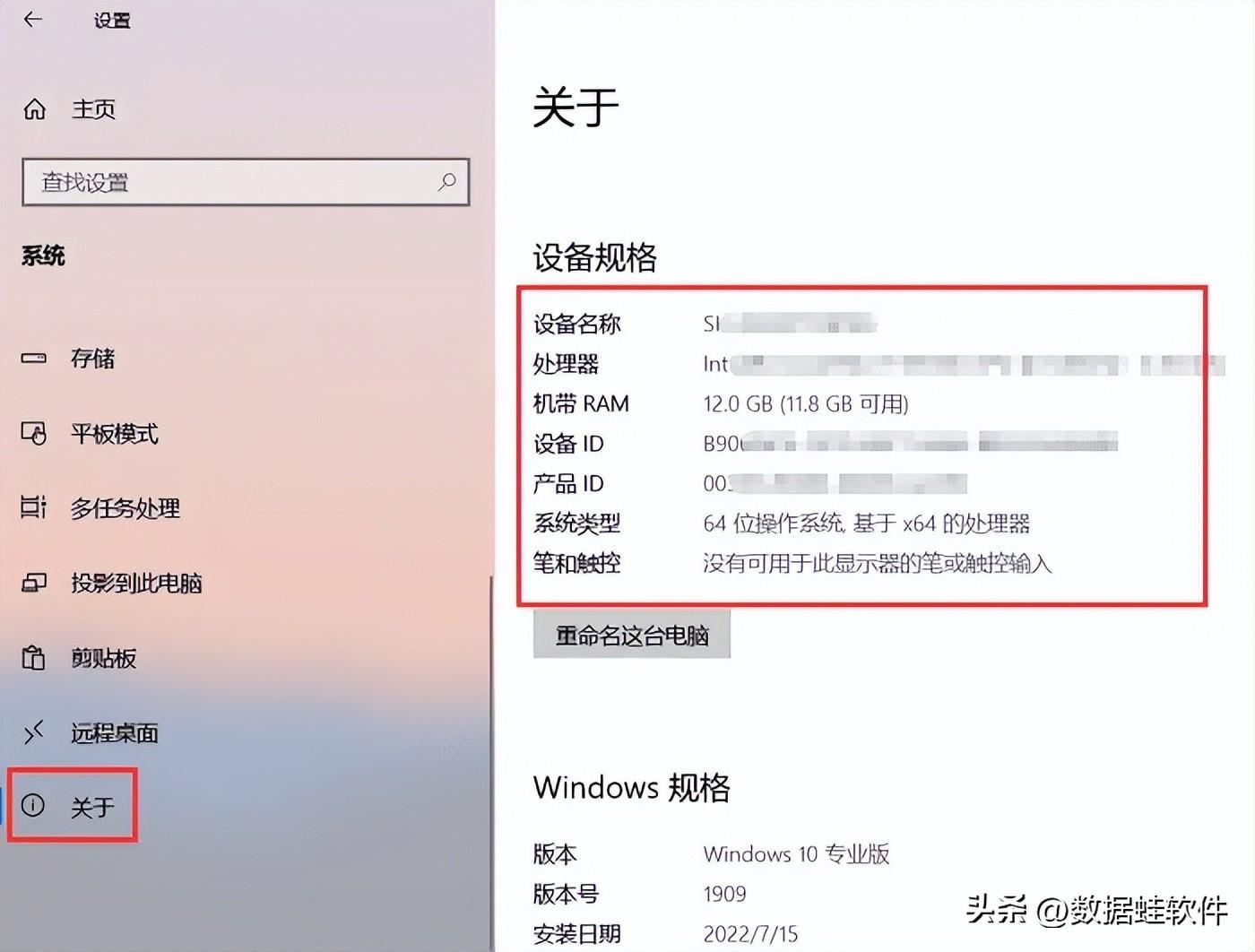 步骤3:在打开的窗口中,你将找到详细的系统信息,包括处理器、内存、操作系统等。