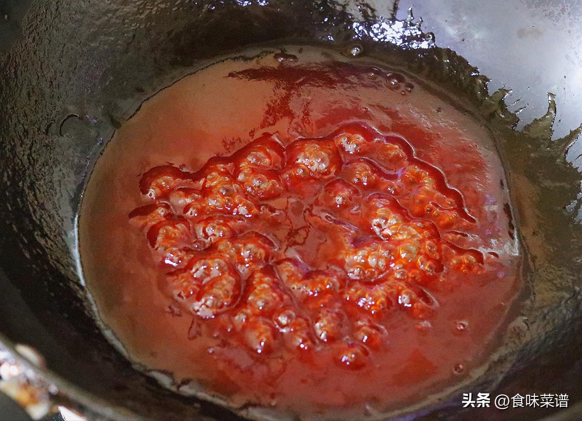 这道菜熬糖醋汁是关键,熬制的过程要用小火,避免黏稠糊底了,要一直搅拌,别离开,别走远,别偷懒。