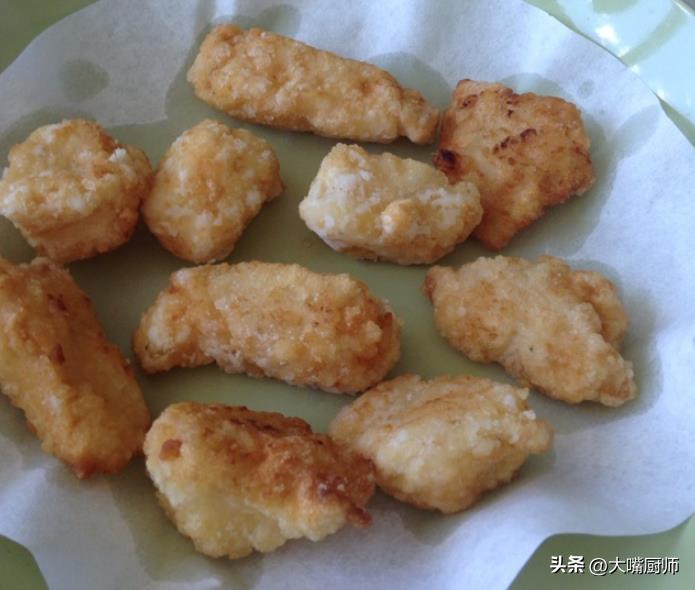 2、起锅烧油,五成热时放入鱼块,小火炸2分钟,定型后勤翻面,等到颜色金黄后捞出沥油。碗里加入1勺料酒、2勺生抽、3勺白糖、4勺番茄酱、5勺清水,用筷子搅拌均匀。