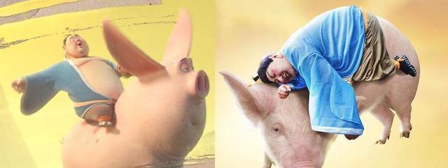 但,太乙真人是修行之人,可以超然物外,在电影里,可以直接形象理解为一个非常宝器的人,骑一头萌萌哒的猪。瞬间就非常接地气,非常有喜感。太乙真人的油腻大叔形象也讨喜起来。