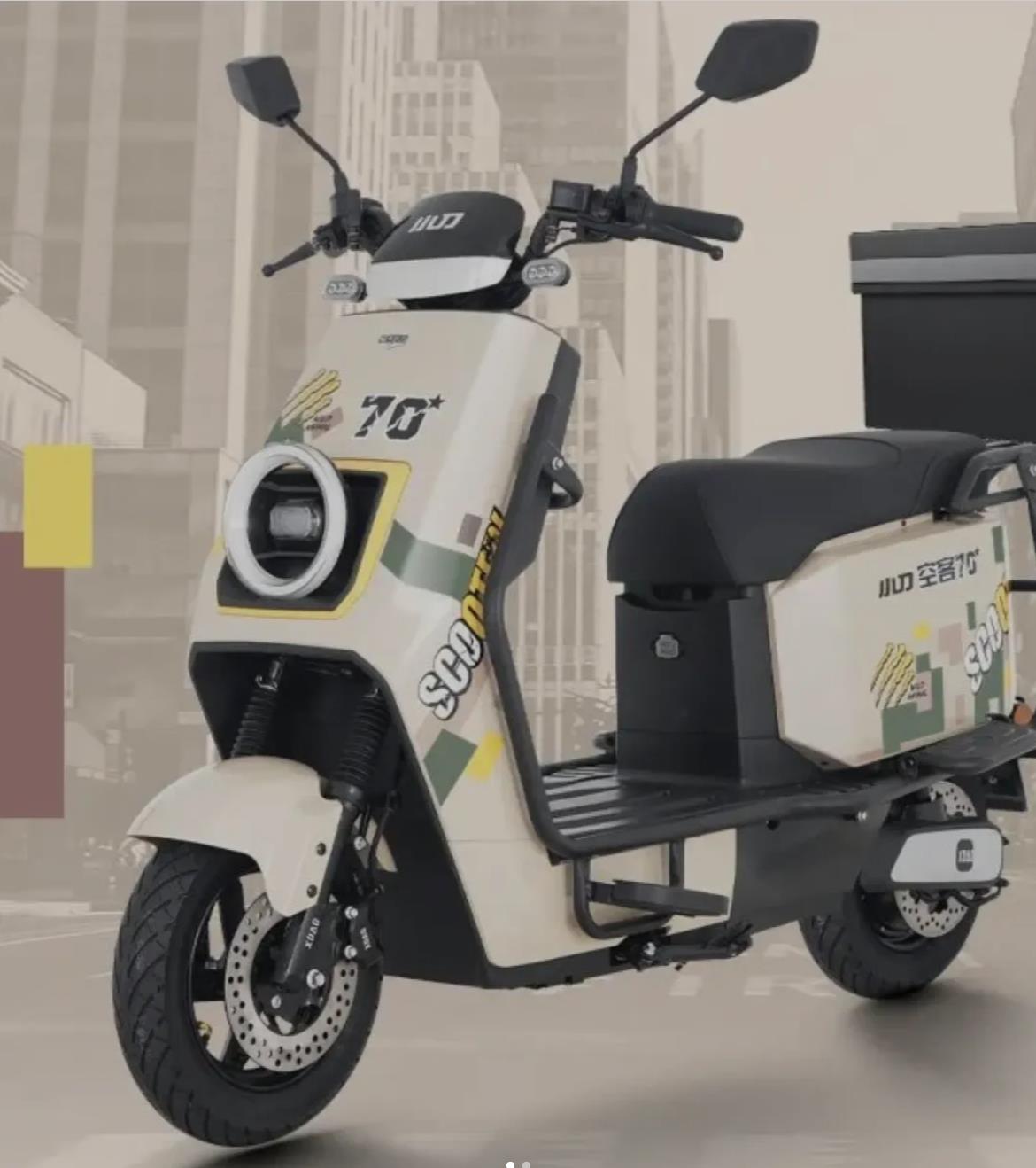 车辆外观采用方正圆润设计,前置大灯,动力十足,车辆带有40L大容量座桶,后置双减震,另外,配置1200W功率电机,满足日常出行动力。