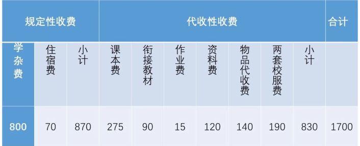 (1)书本费、校服费、生活用品费等据实结算多退少补。