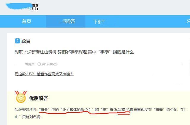 这个“事泰”究竟什么含义呢,有人说:是不是“事业”中的“业(繁体的那个)”和“泰”很像,写错了。汉典里也没有“事泰”这个词,“江山”只能对名词。