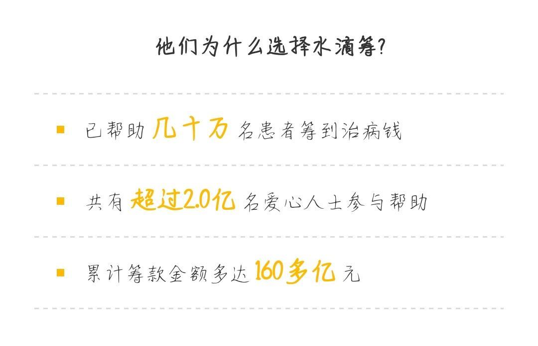 先看一组数据吧,最为国内最大的熟人筹款平台,截止2019年5月,水滴筹已经成功为几十万名经济困难的大病患者提供了免费筹款服务,累计筹款金额超过160亿元,捐款人次超过2亿。