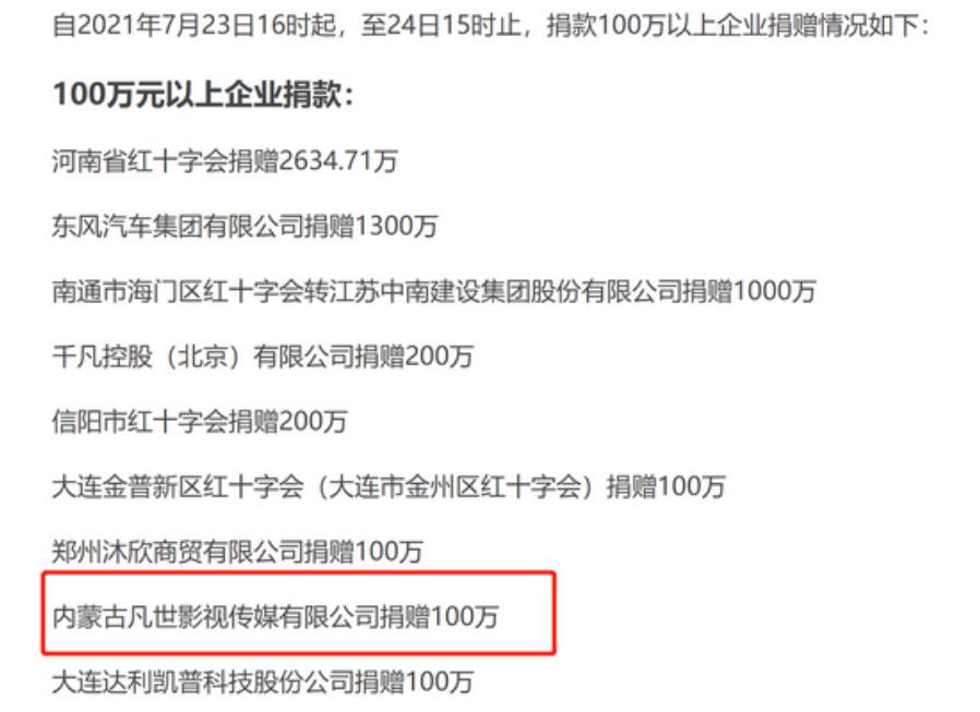 今天,有媒体晒出新的为河南捐款的记录清单,其中我们看到吴亦凡工作室“凡世影视传媒”捐款100万元,看来吴亦凡并没有忘记河南的网友们,依然是心系河南,不少粉丝们还为吴亦凡这样的行为点赞。