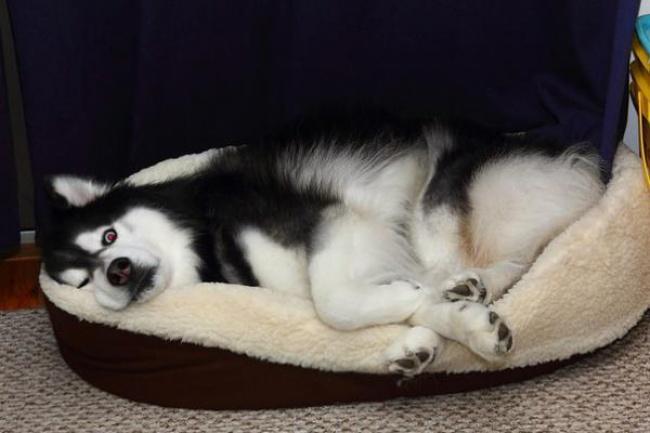 哈士奇:看什么看,没看过人家睡觉啊