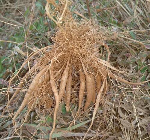 一是为多年生草本,高度在四、五十公分;根多条簇生,黑褐色,细长纺锤形;