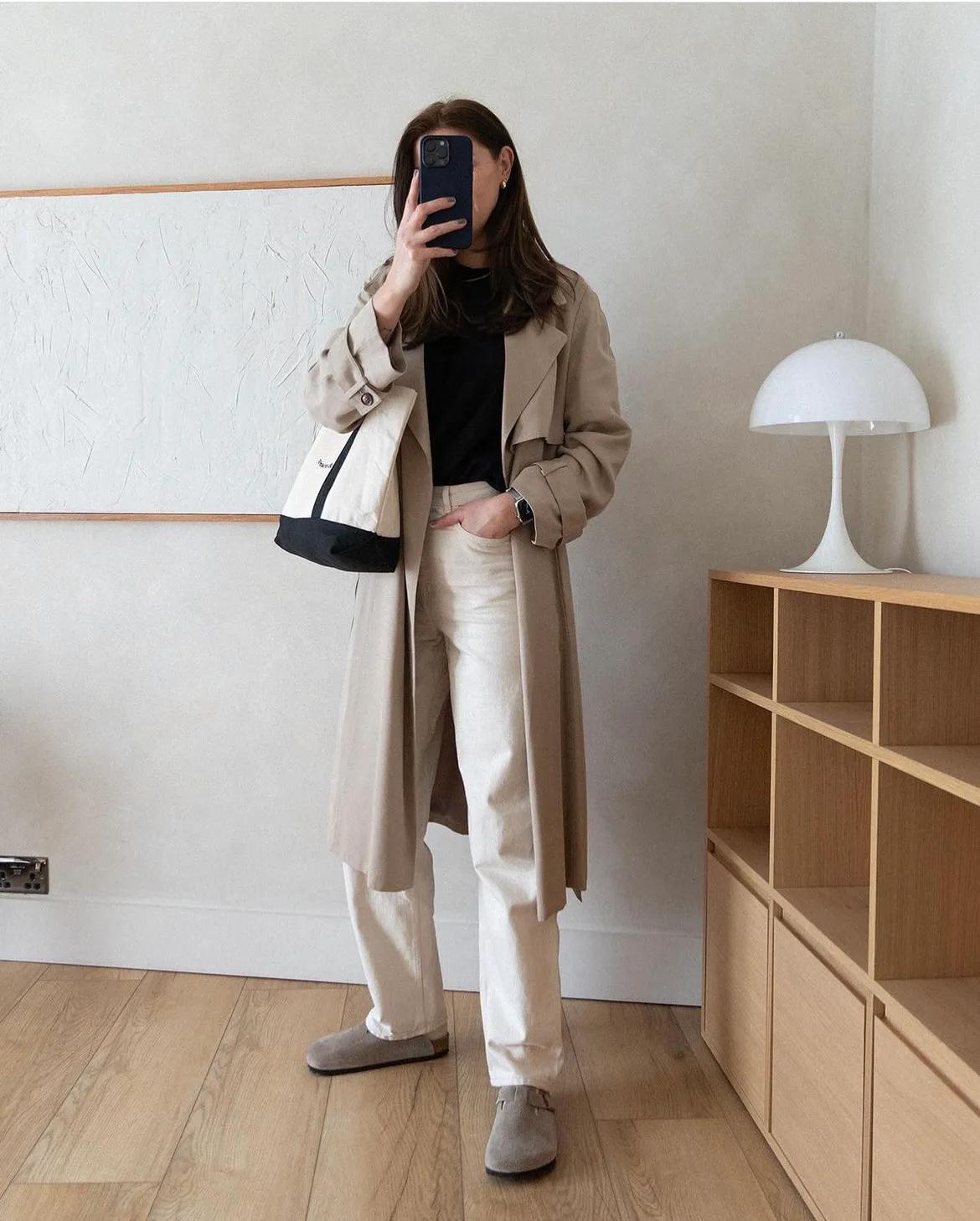 同样的配色原理也可以用在长风衣上,有种成熟精英感的魅力。