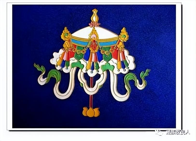 1.宝伞:藏传佛教认为它象征着佛陀教诲的权威,也代表佛陀之头;表示覆盖一切,开闭自如,以保护众生的象征。