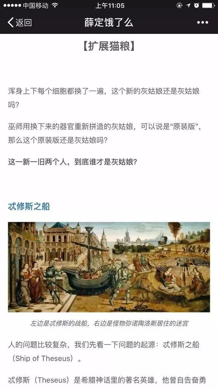 “薛定饿了么”会在微信公众号上补充猫粮(解释视频背后的知识和暗含的梗),在"洞穴杀人案”视频下面,团队贴上了罗辑思维讲过的相关内容。