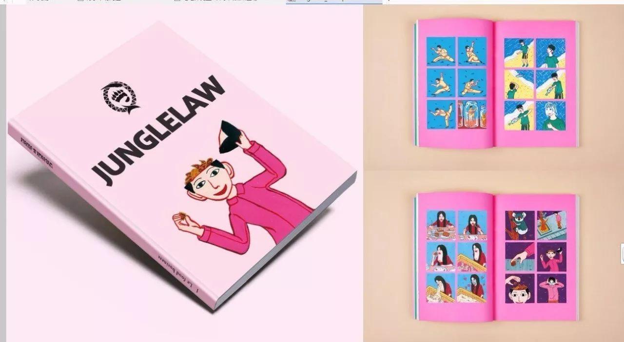 这群各有自己特长、想象力丰富的人曾有过许多奇怪、有趣的想法:做过一个给朋友圈牢骚配图的app,用sb元素做的sb周边,设想在ipad上做交互电子书、在工作室的墙上是他们自己的junglelaw漫画设计品牌。