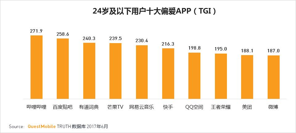 QuestMobile的数据显示,24岁以下用户十大偏爱APP之首是B站,而一些现在主流的内容平台、流量大号、社区放到90、95后的语境下,存在感降低。