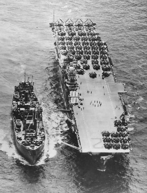 1944年夏天,在菲律宾海海战的两天里,美国航空母舰航空团的飞行员们击落了日本海军90%以上的航空作战力量。1945年春天,美国航空母舰航空团击沉了日本海军的5艘战列舰,其中包括“武藏号”和“大和号”,同时击沉了日本海军的11艘航空母舰、14艘巡洋舰及一些其他的军舰。战争结束时,美国航空母舰航空团的飞行员们在空中决斗中击落了超过9000架日军战机,而且几乎一半的舰载机是从埃塞克斯级航空母舰上起飞升空的,埃塞克斯级航空母舰的航空团为美国在太平洋战场的胜利做出了巨大贡献。